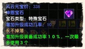 3.充值面值50元游戏卡可以获得"风云新年50元大礼包"。风云新年50元大礼包包括:2张"完美装备炼制符"和1个"神恩宝石"。